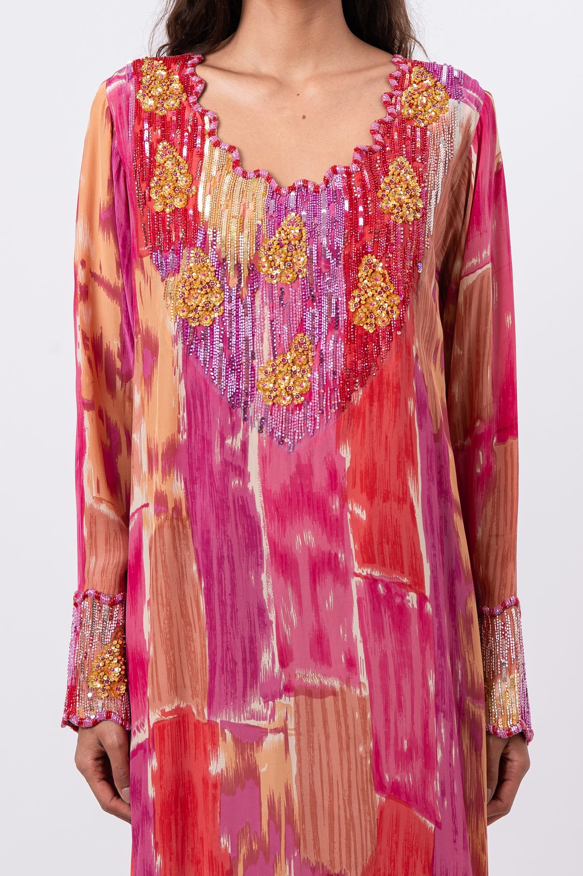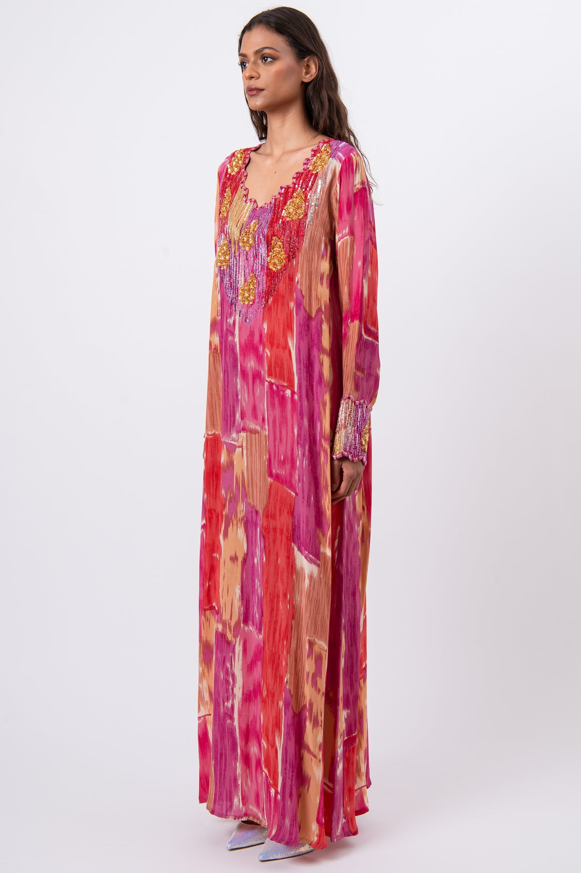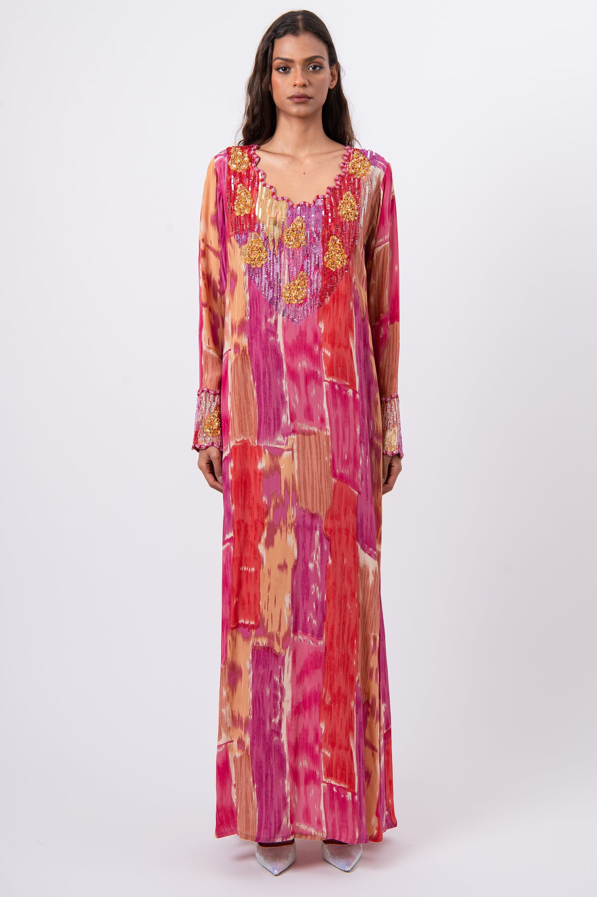 • Embellishment: Extensive hand embroidery with sequins and crystals
